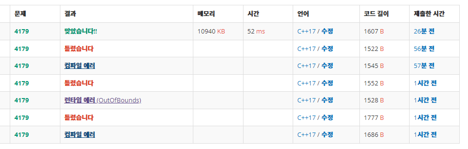 여러 테스트를 돌려보니 성공할때 인덱스가 넘어가는 부분에서 성공한다는것을 발견하고 다지우고 다시 짰다.