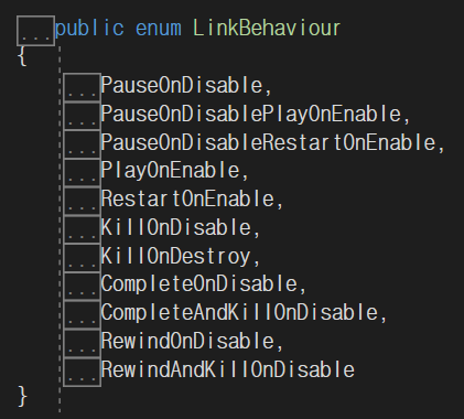 LinkBehaviour 열거자를 확인해보면 상당히 많은 열거자들을 볼 수 있는데,
