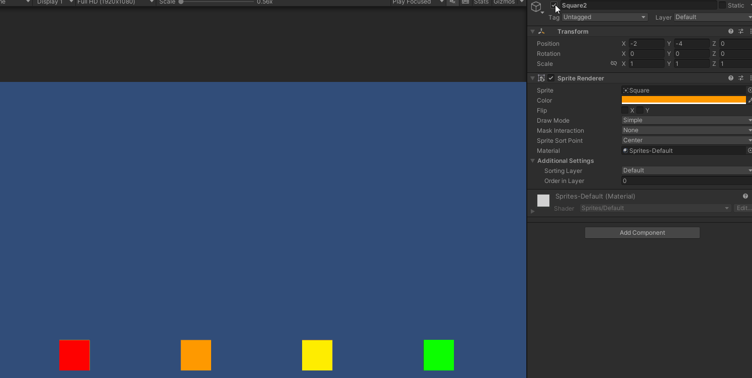 네모의 Y 값을 전부 -4에 두고 1,2번째 네모는 Y값 4로 이동,