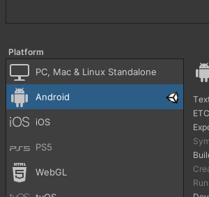 빌드 세팅으로 들어가서 안드로이드로 바꿔주면, 창이 하나 뜬다.