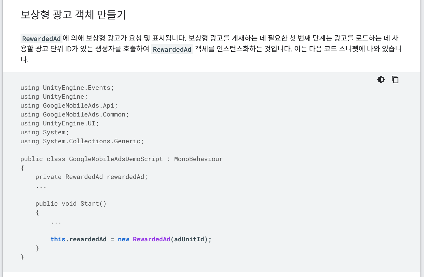이곳에서 유니티 보상형광고의 가이드를 볼 수있는데...