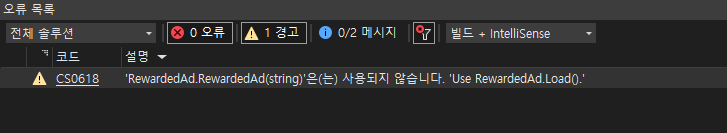 최신 버전이라 그런지 RewardedAd.Load()를 사용하라고 한다..