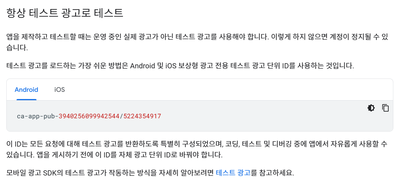 그 과정은 나중에 어플이 완성이 되면 테스트해보면 되기 때문에 따로 애드몹에 가입하고 어플을 등록하는 과정은 생략했다.