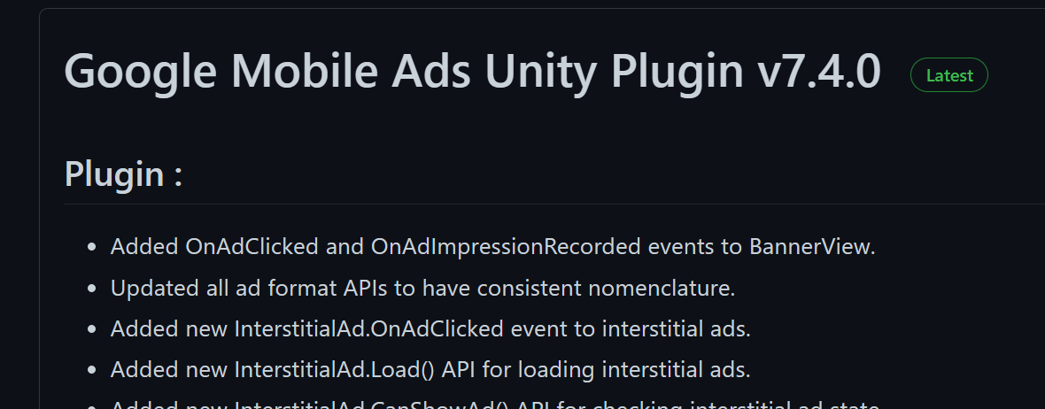 깃허브 링크로 들어가서 유니티용 구글 애드몹 SDK를 받아준다.
