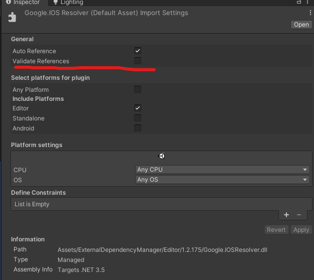 Validate References 항목을 체크 해제해주니 에러가 없어졌다.