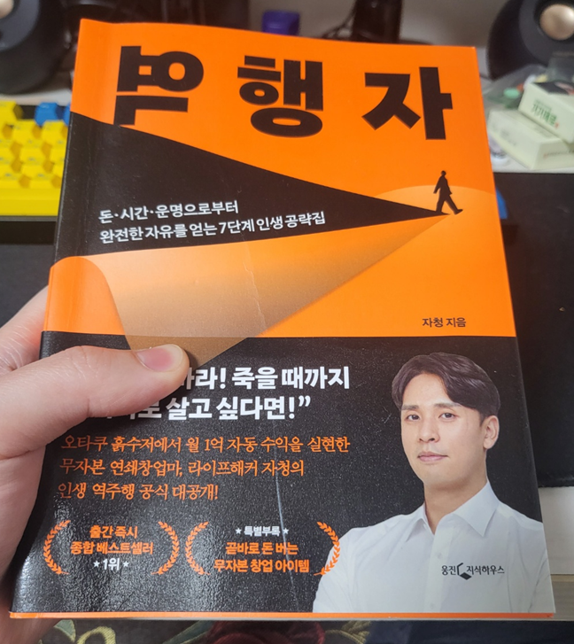 의자에 아무생각없이 앉아있었는데 책상 구석에 있는 역행자 책이 보였다.