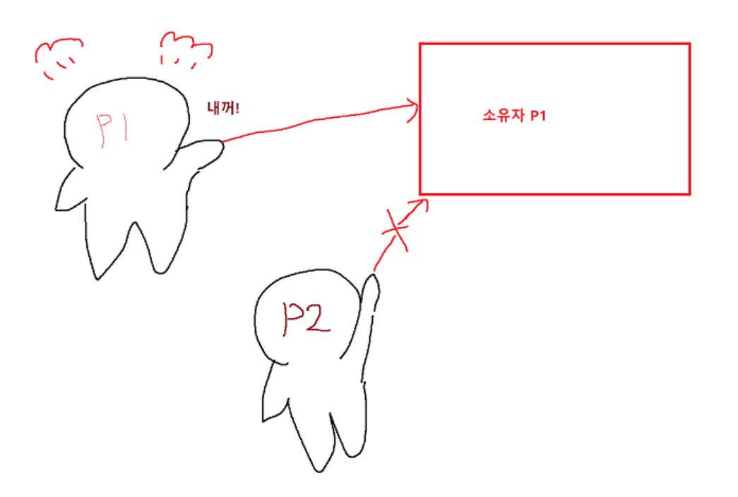 참조자를 1개만 인정하기 때문에 p2가 그대로 p를 참조하는 것을 허용하지는 않는다.