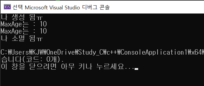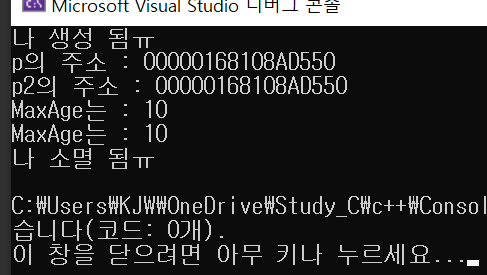 실행을 해보면 delete를 해주지 않아도 알아서 소멸자가 나오는 것을 볼 수 있다. (이래서 스마트?)