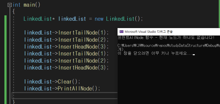 std::cout << "RemoveHeadNode 함수 - 현재 노드가 하나도 없습니다!" << std::endl;