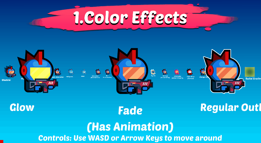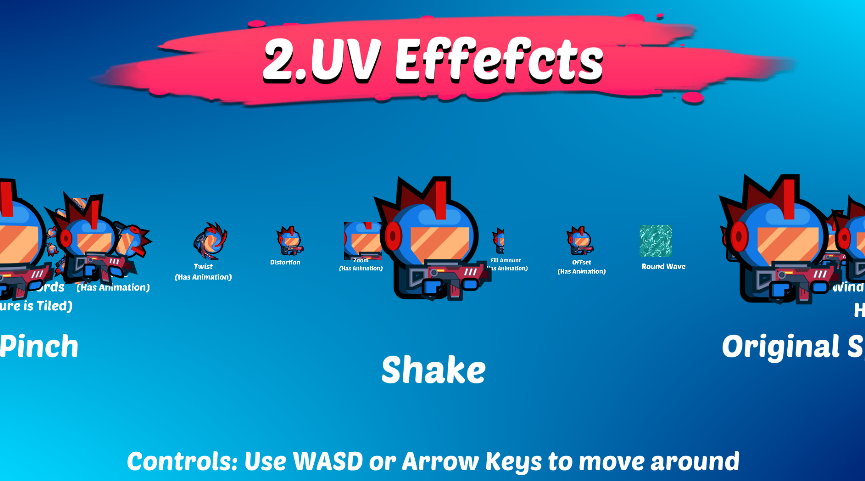 All In 1 Sprite Shader는 그런 쉐이더로 표현가능한 효과들을 쉽게 이용할 수 있게 해준다.