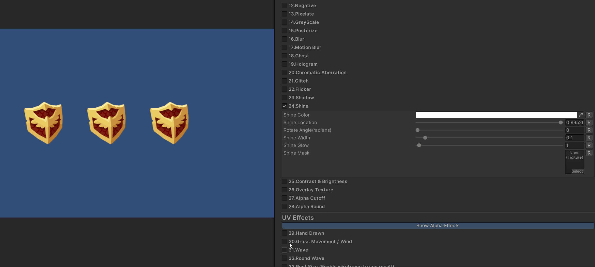 위에서 애니메이터로 만든 Shine 효과를 스크립트로 구현해봤다
