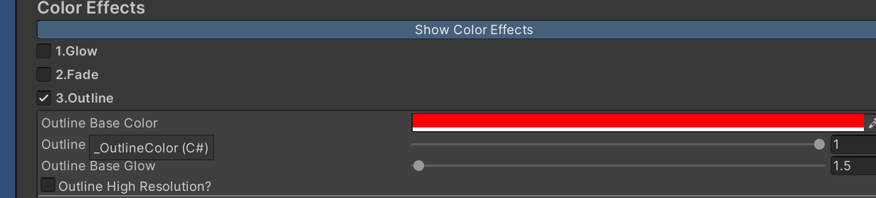 난 아웃라인의 색깔을 바꾸고싶기 때문에 ' _OutlineColor ' 를 이용해서 컬러를 변경해주면 된다.