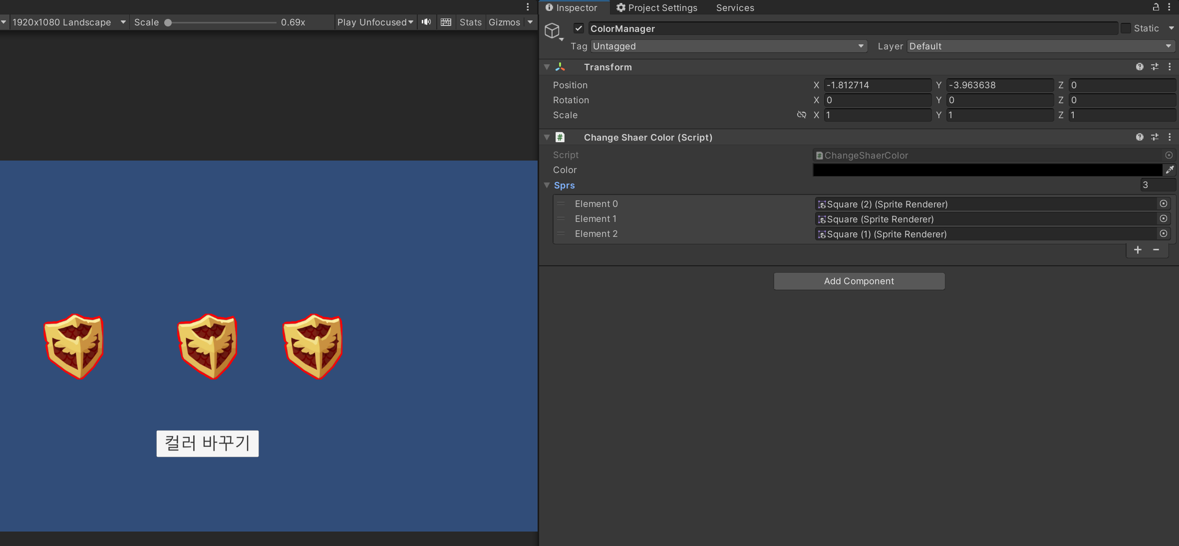 그냥 간단하게 씬에 방패들을 배치해주었다. (UI가 아닌 SpriteRenderer)