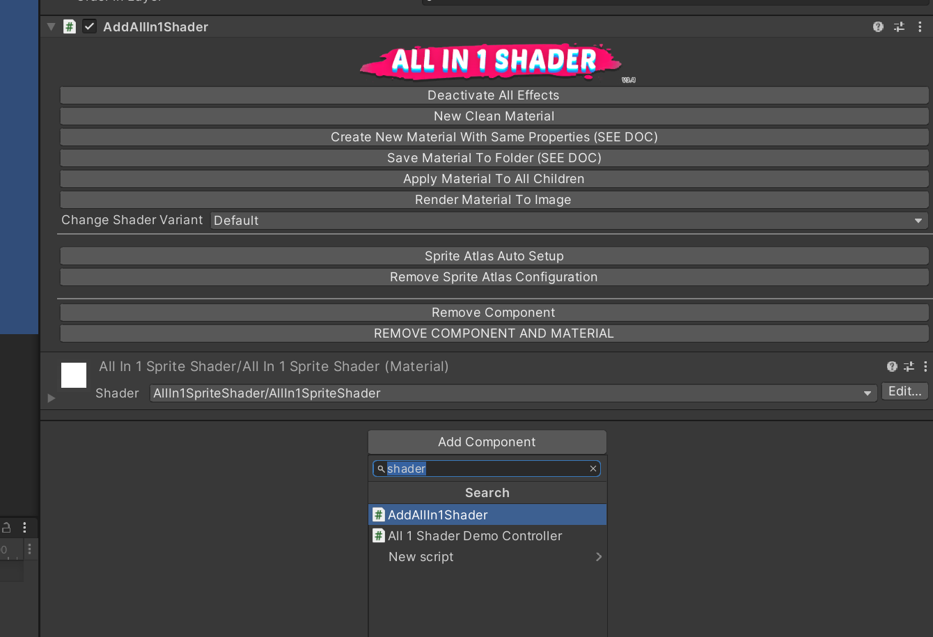 AddAllIn1Shader를 클릭해서 스크립트를 추가해준다.