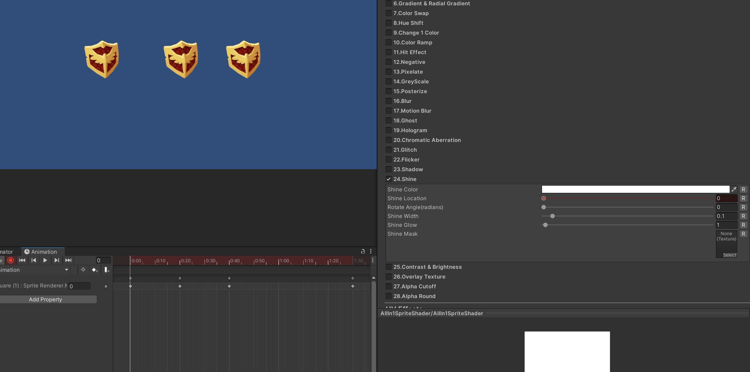 위에서 애니메이터로 만든 Shine 효과를 스크립트로 구현해봤다