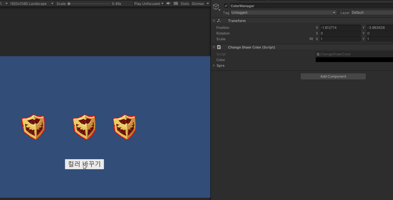 컬러 매니저를 만들어서 해당 스크립트를 부착해주고,