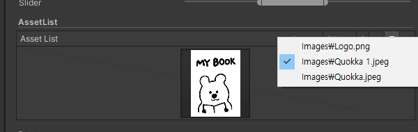 에셋 리스트는 폴더안에 파일들을 전부 가져와서 고를 수 있게 해주는 기능이다.