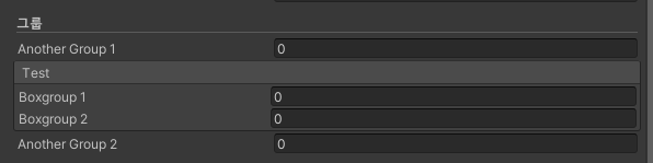 아까 VerticalGroup을 썼던것처럼 묶고싶은 변수의 위에 BoxGroup 애트리뷰트와 그룹 이름을 입력해주면 된다.