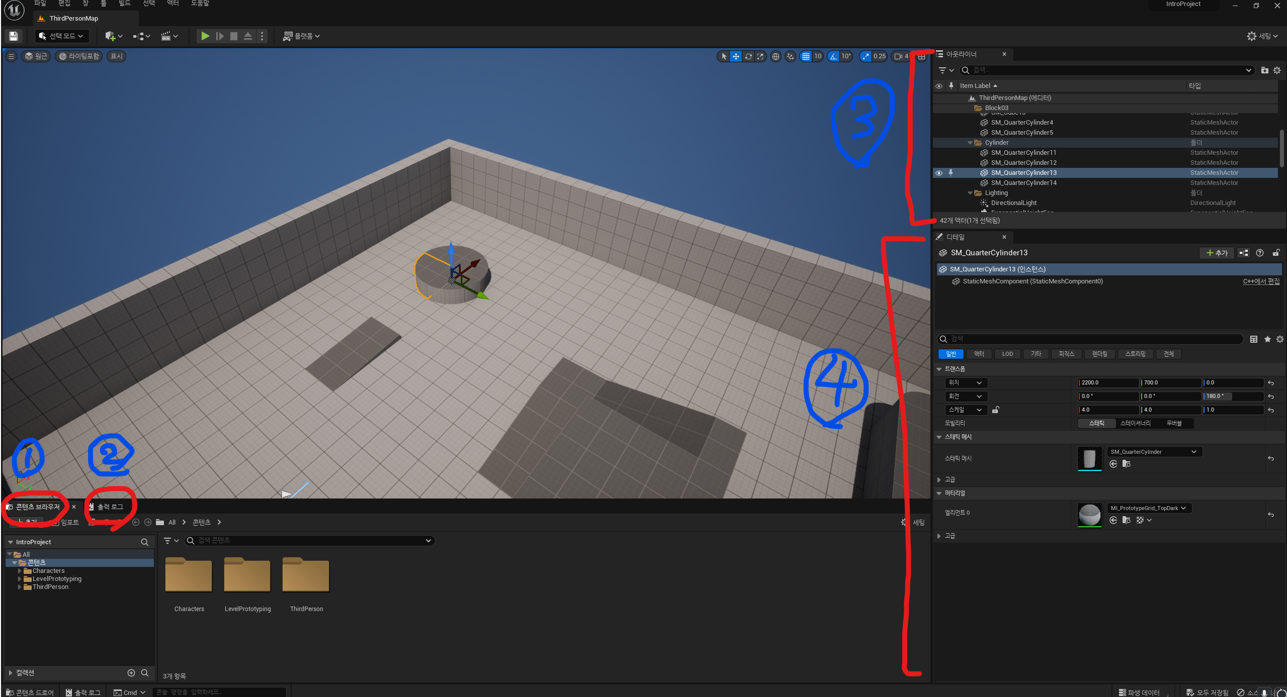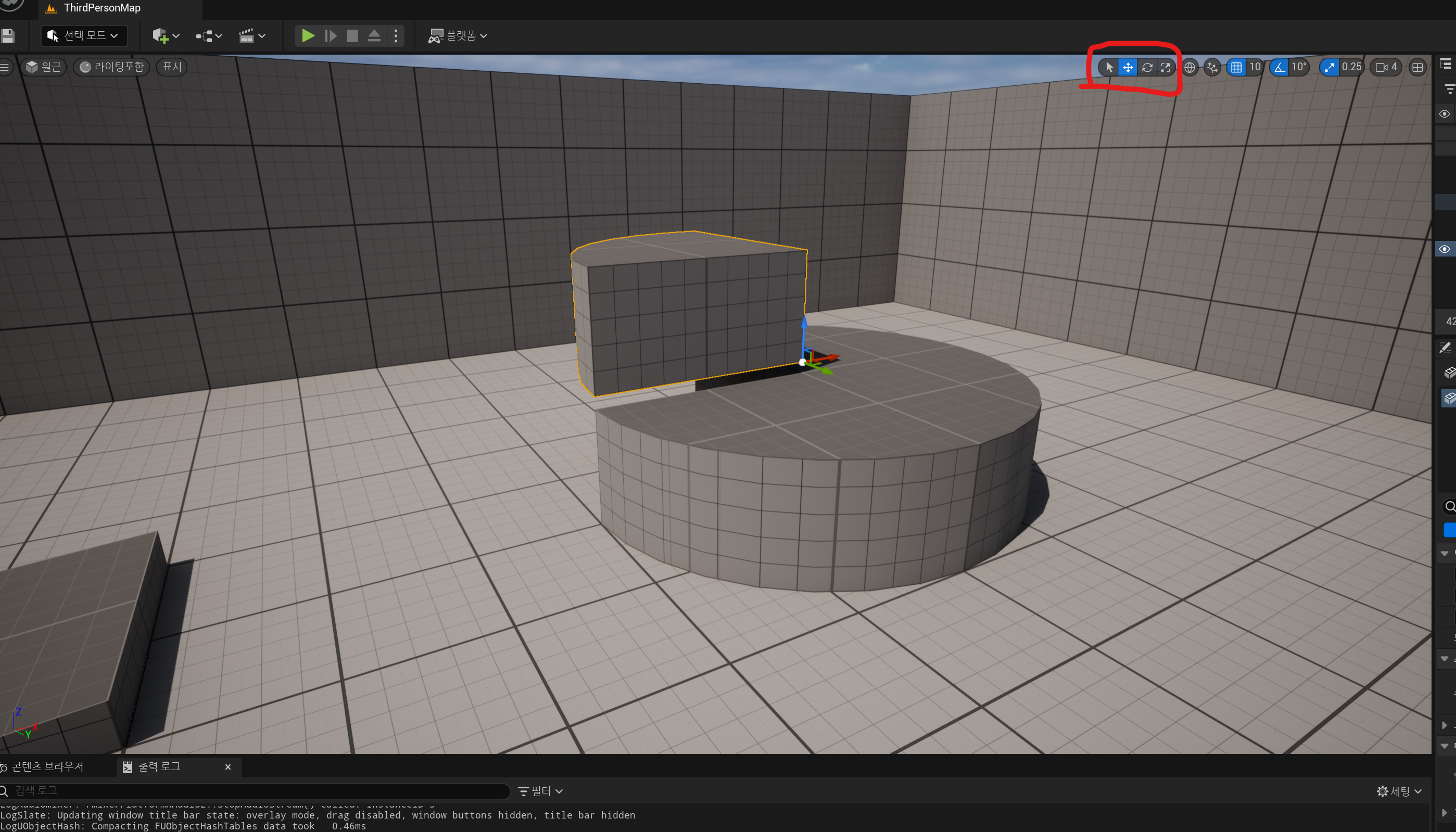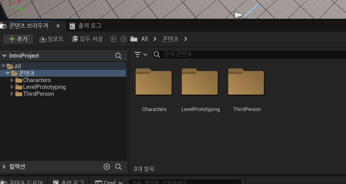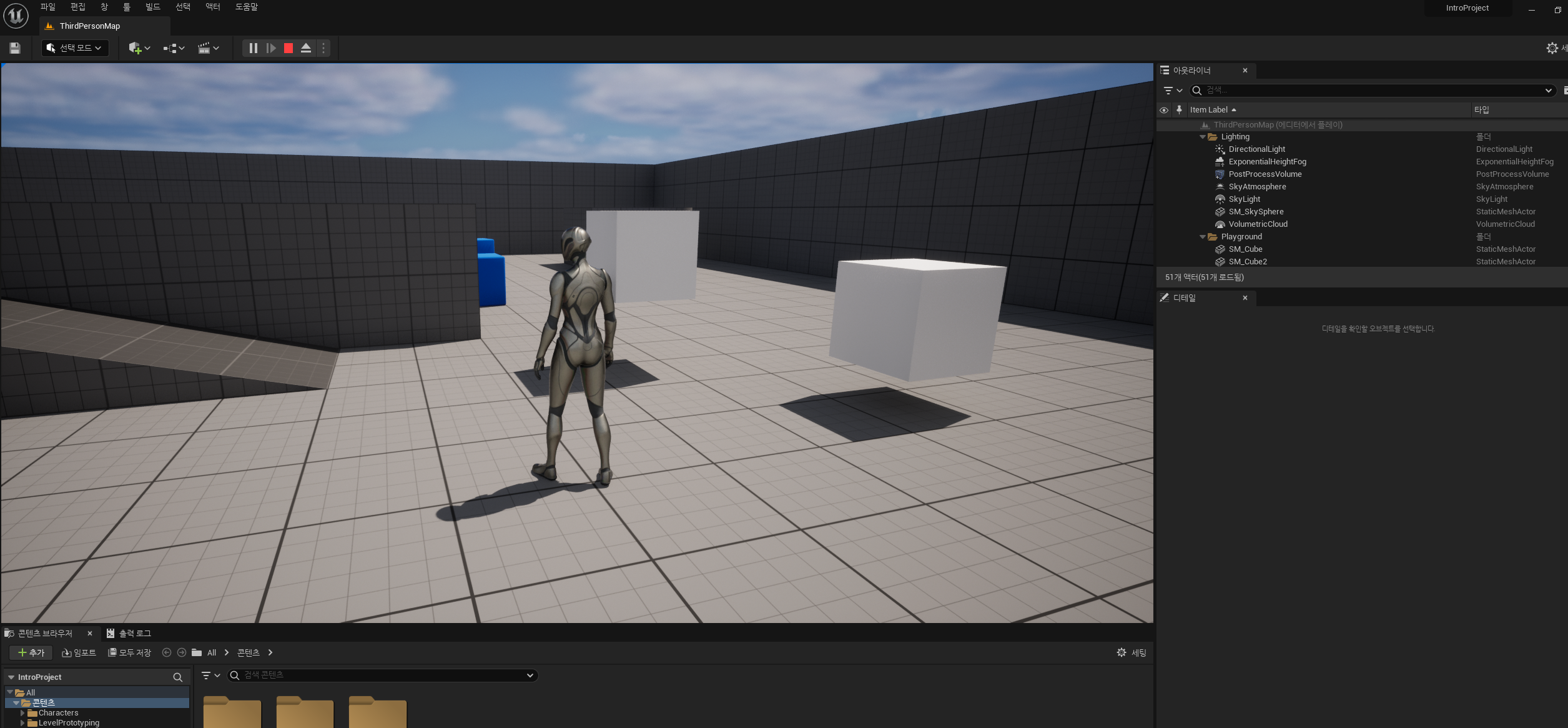 일단 Alt + P나 중간에 초록색 재생버튼을 눌러서 언리얼을 맛보자.
