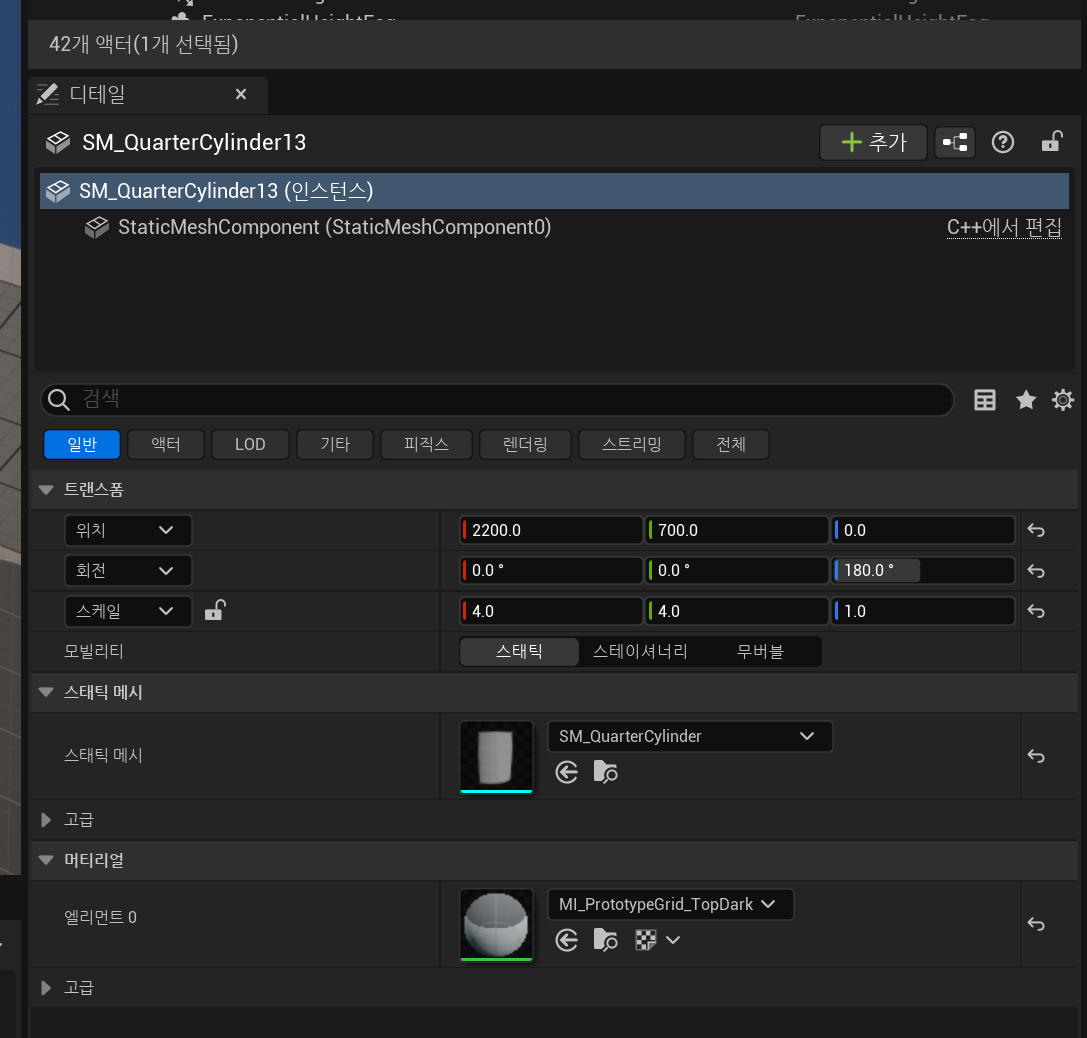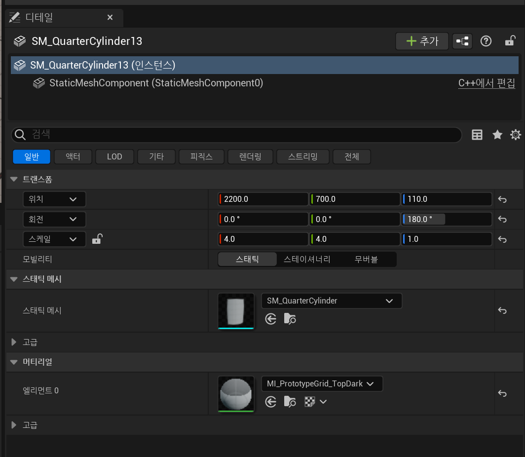 그리고 뷰포트 뿐만아니라 디테일에서 직접 값을 입력해서도 수정이 가능하다.