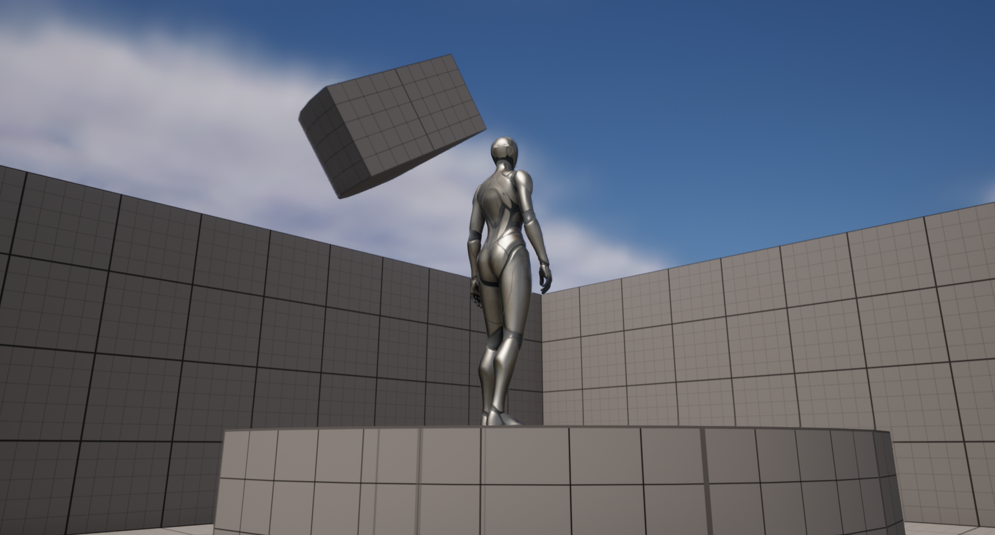 오브젝트를 위로 올린채로 게임을 실행해보면 기본적으로 피직스가 설정되어있지 않아서 허공에 가만히 떠있는것을 볼 수있다.