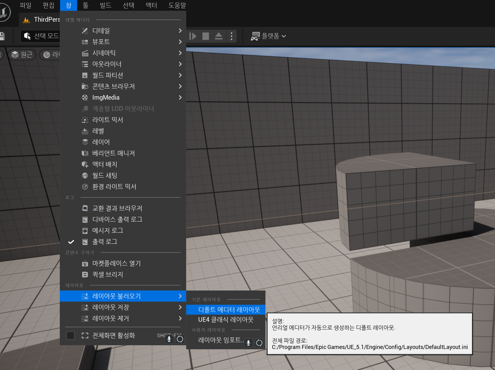 하지만 바꾸다가 처음 레이아웃을 쓰고싶다면 해당 옵션으로 가서 디폴트 에디터 레이아웃을 불러와도 된다.