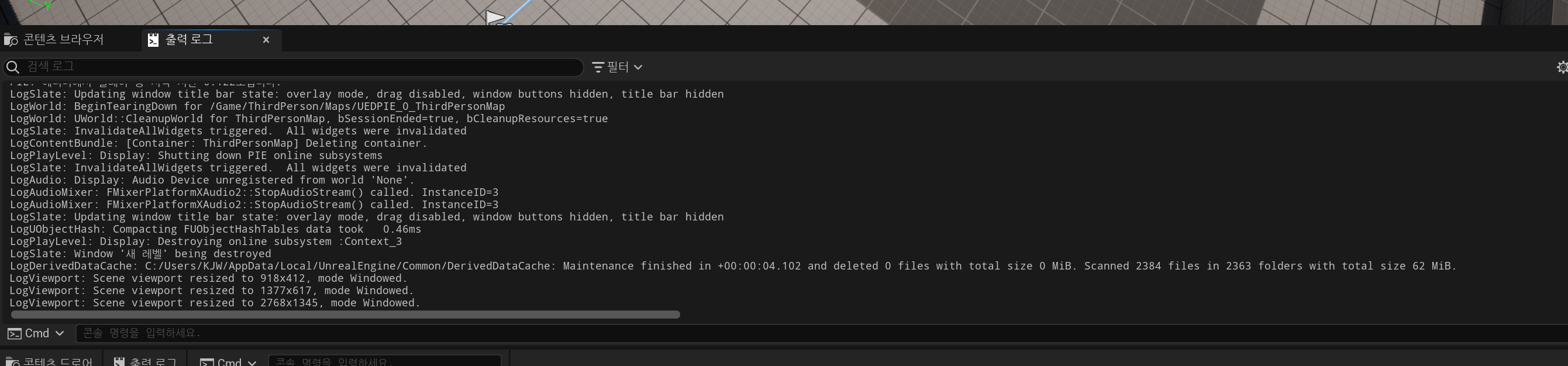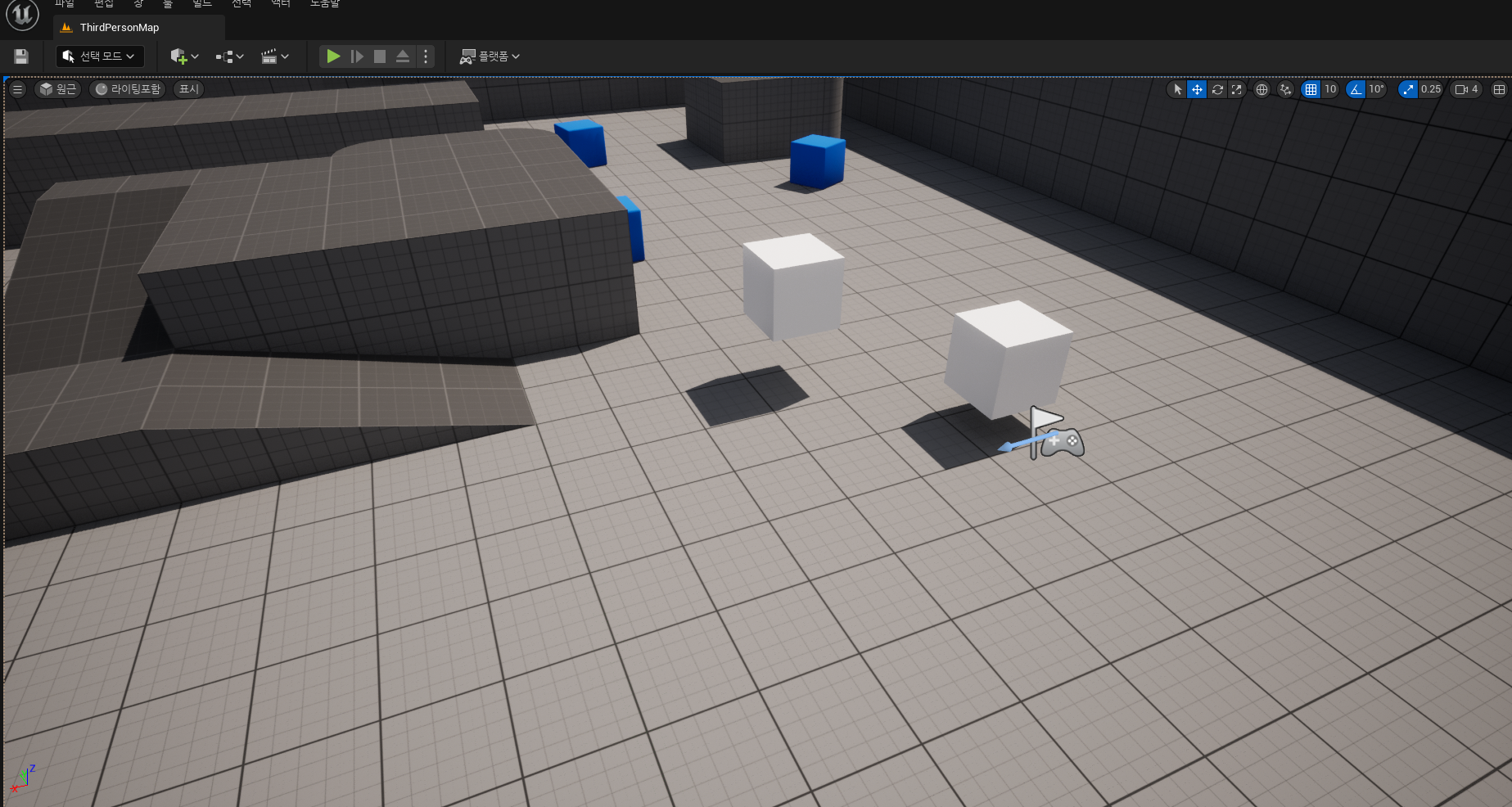 일단 Alt + P나 중간에 초록색 재생버튼을 눌러서 언리얼을 맛보자.