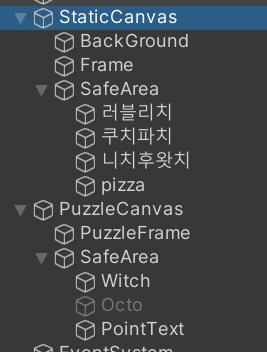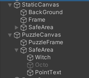 나같은 경우는 퍼즐배경과 퍼즐의 위치를 맞추기 위해 캔버스 2개에 프레임이 1개씩 총 2개가 있었다.