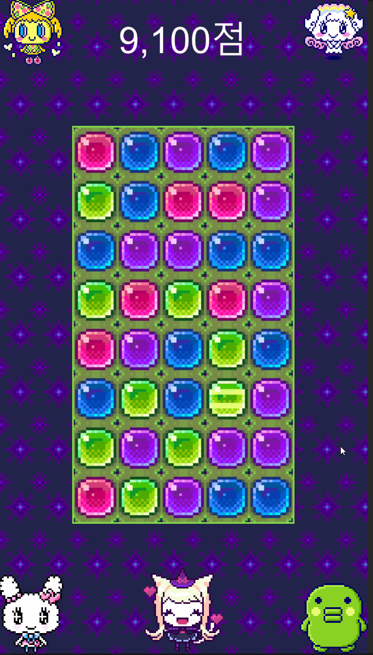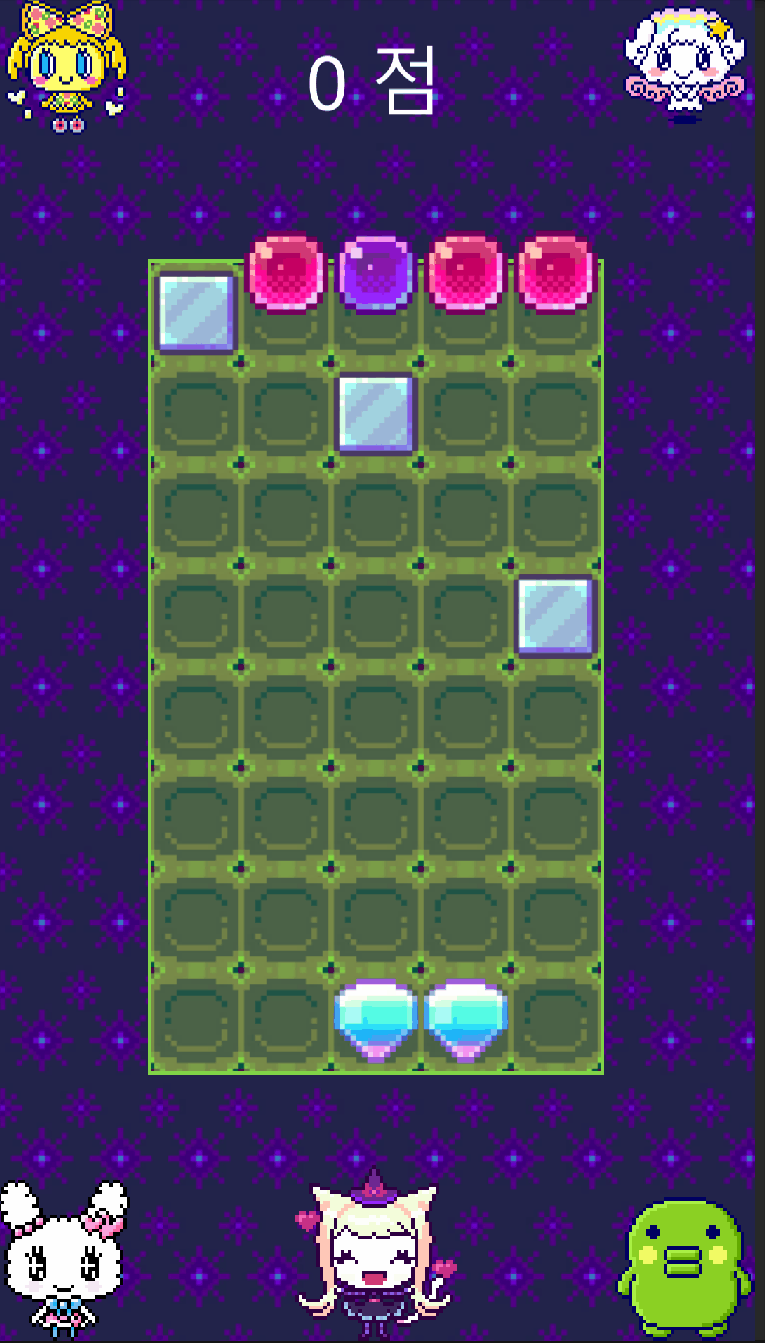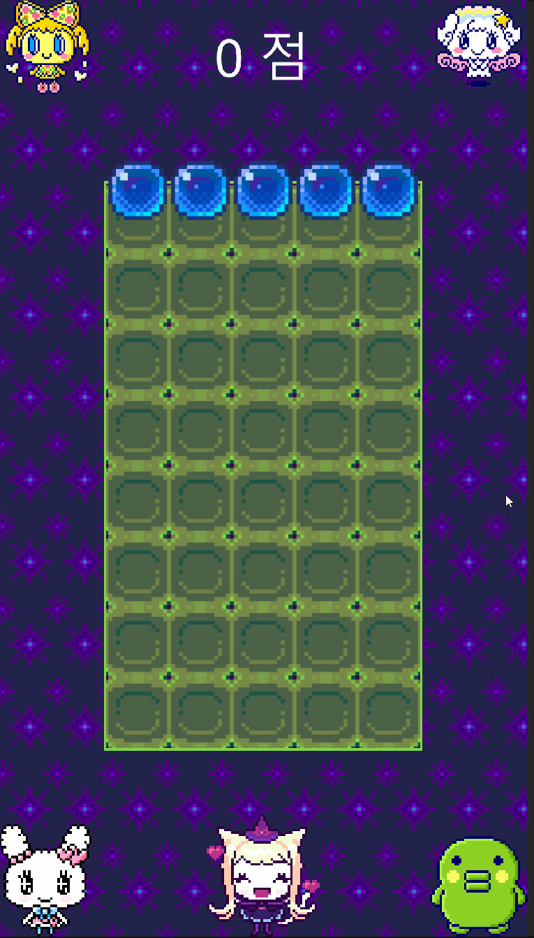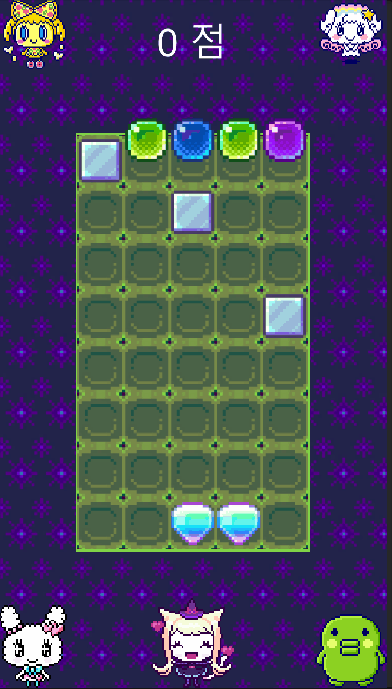 수시로 퍼즐이 떨어지고 애니메이션이 재생되는 동적인 캔버스 2개로 나눠서 진행을 했다.