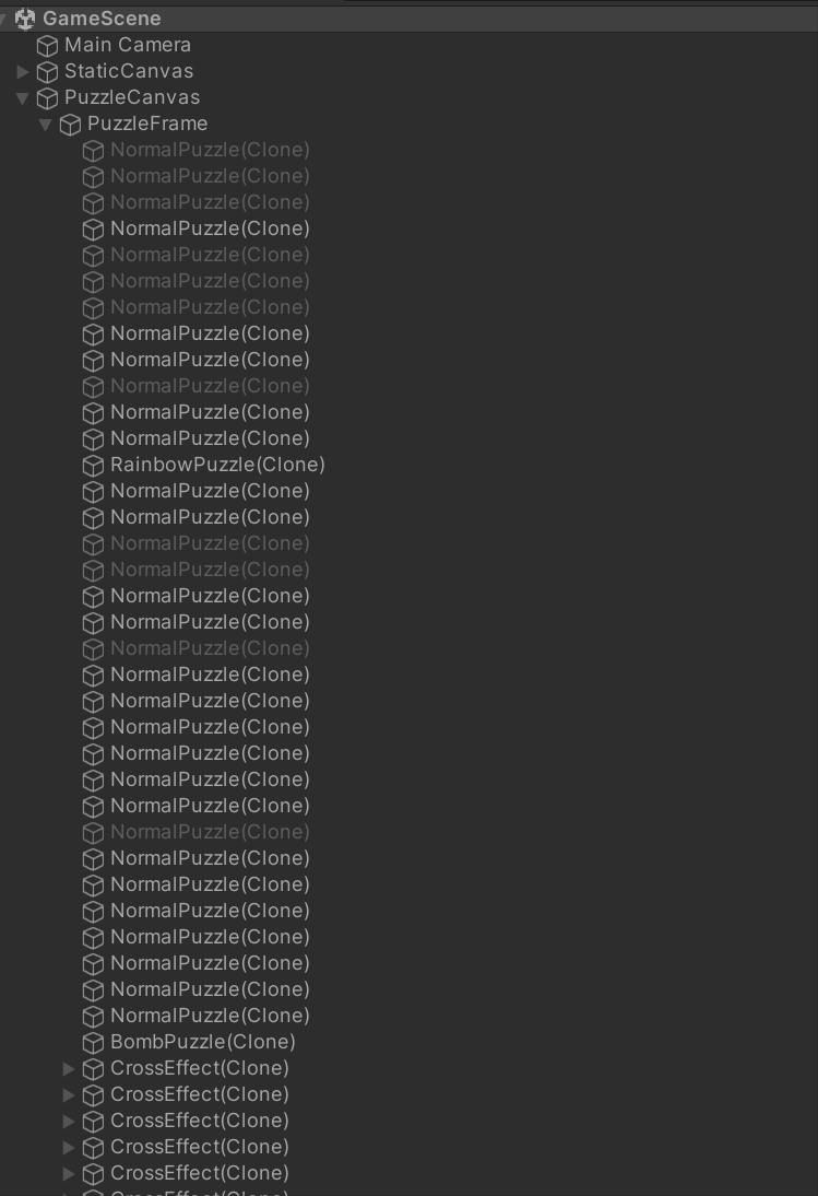 가장 많이 생성되는 노말 퍼즐은 오브젝트 풀로 관리를 했다.