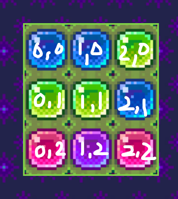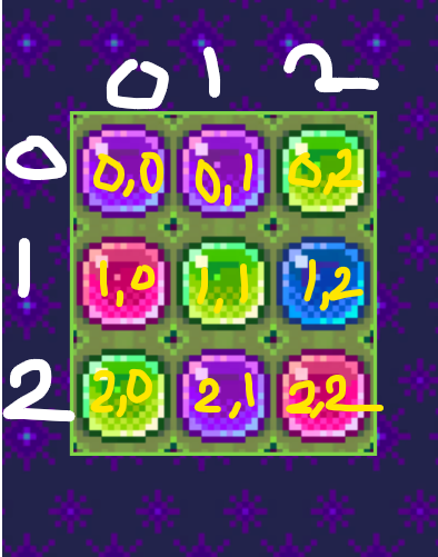 프로그램 내부에서 돌아가는 2차원 배열의 모습은 우리가 화면에 보는 모습과 다르겠지만,