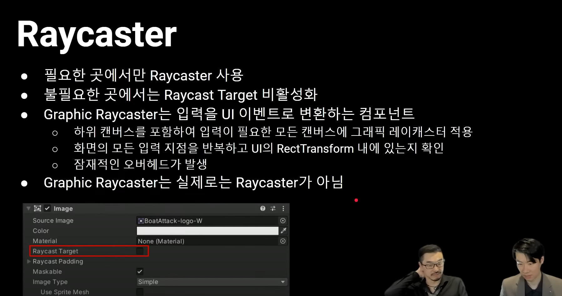 에디터에서 쓸때는 작업을 마치고 비활성화 해두어도 좋고 런타임때 해상도때문에 쓸때는 처음 세팅하고 꺼두는 방법을 말씀 하셨다.