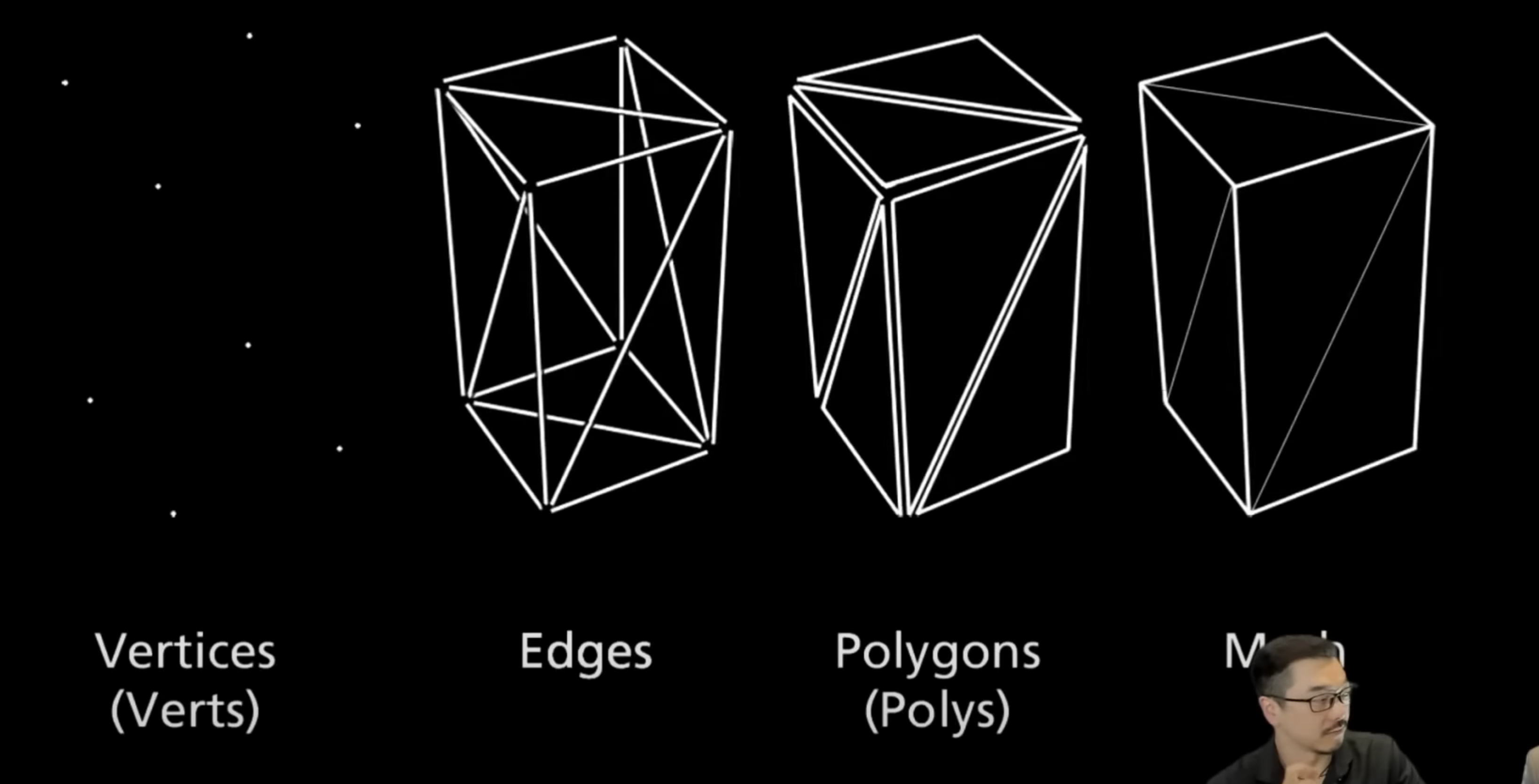 점 -> 점들이 모여서 선이 되고 -> 선들이 모여서 삼각형이 되고 -> 삼각형들이 모여서 메쉬가 된다.
