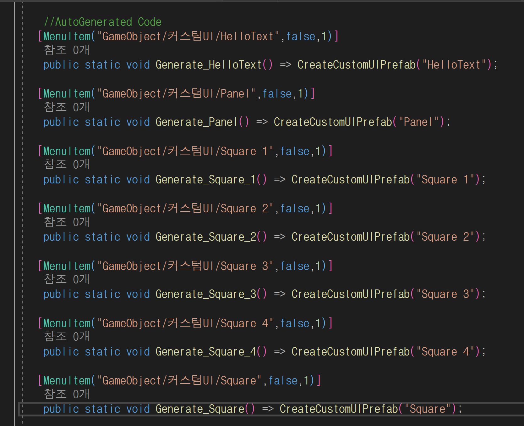 [MenuItem("GameObject/커스텀UI/Square",false,1)]