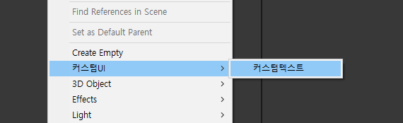 [MenuItem("GameObject/커스텀UI/커스텀텍스트", false, 1)]