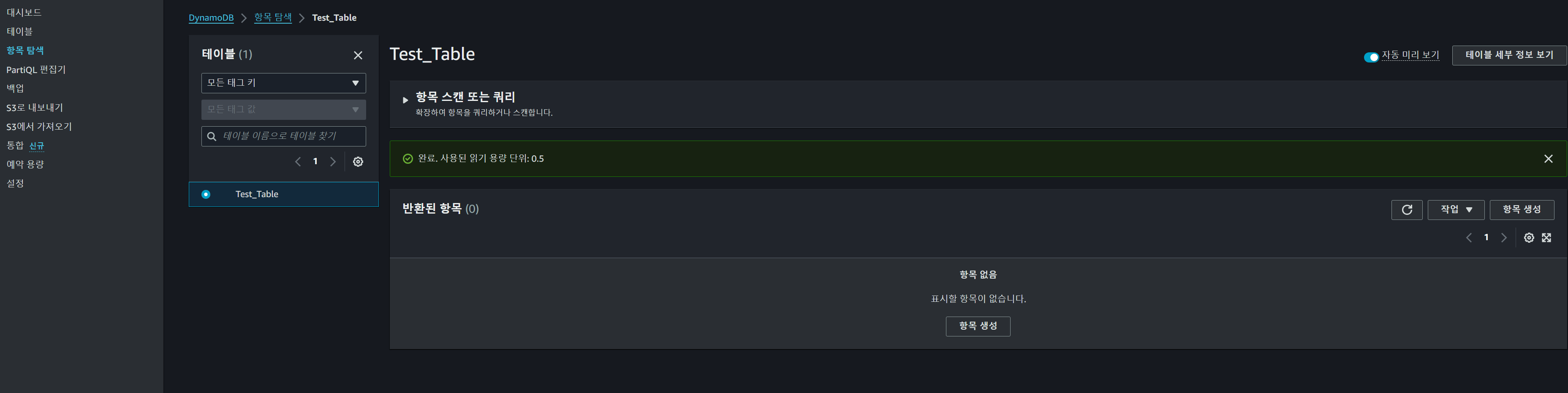 간단한 테스트만 할것이기 때문에 , 파티션키만 UID로 설정해주고 테이블을 생성 해주었다.