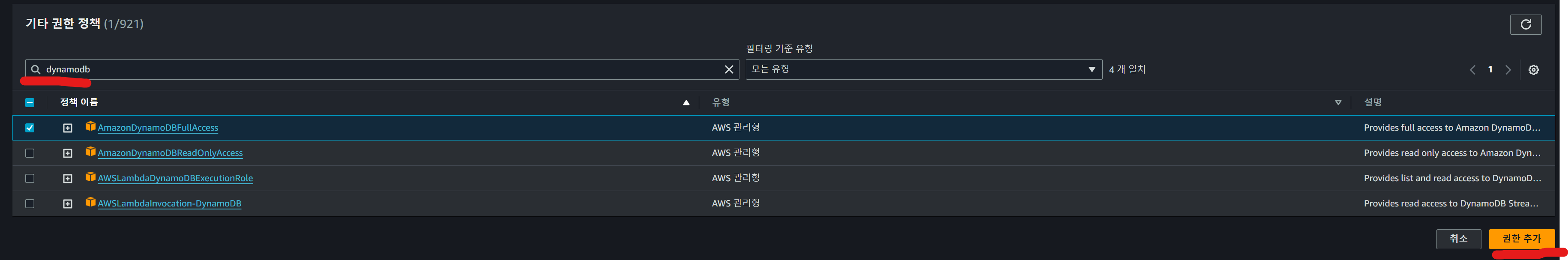 이런식으로 dynamoDB의 access 권한을 부여한다.
