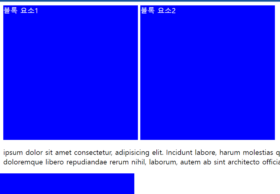 div는 블록 요소이며 width,height 속성으로 크기를 제어하면 크기에 맞게 다른 요소들을 밀어낸다.