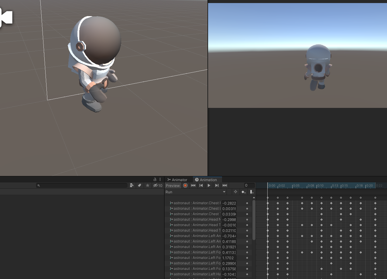이걸 하나 하나의 애니메이션으로 자르고 루프를 시켰을때 어색하지 않게 하기위해 생고생을 했다..