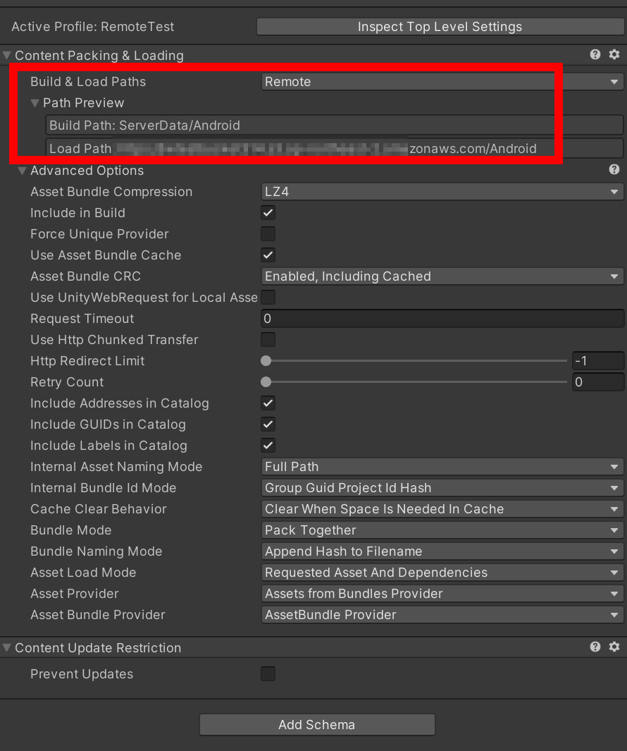 여기서도 상단에 Build & Load Paths 가 있는데, 어드레서블 설정과 똑같이 Remote로 설정해준다.