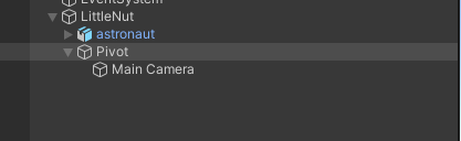 리틀넛이라는 빈 오브젝트 안에 캐릭터 모델을 넣고, Pivot이라는 축을 만들어서 캐릭터의 어깨~머리쯤 오게 세팅한다.