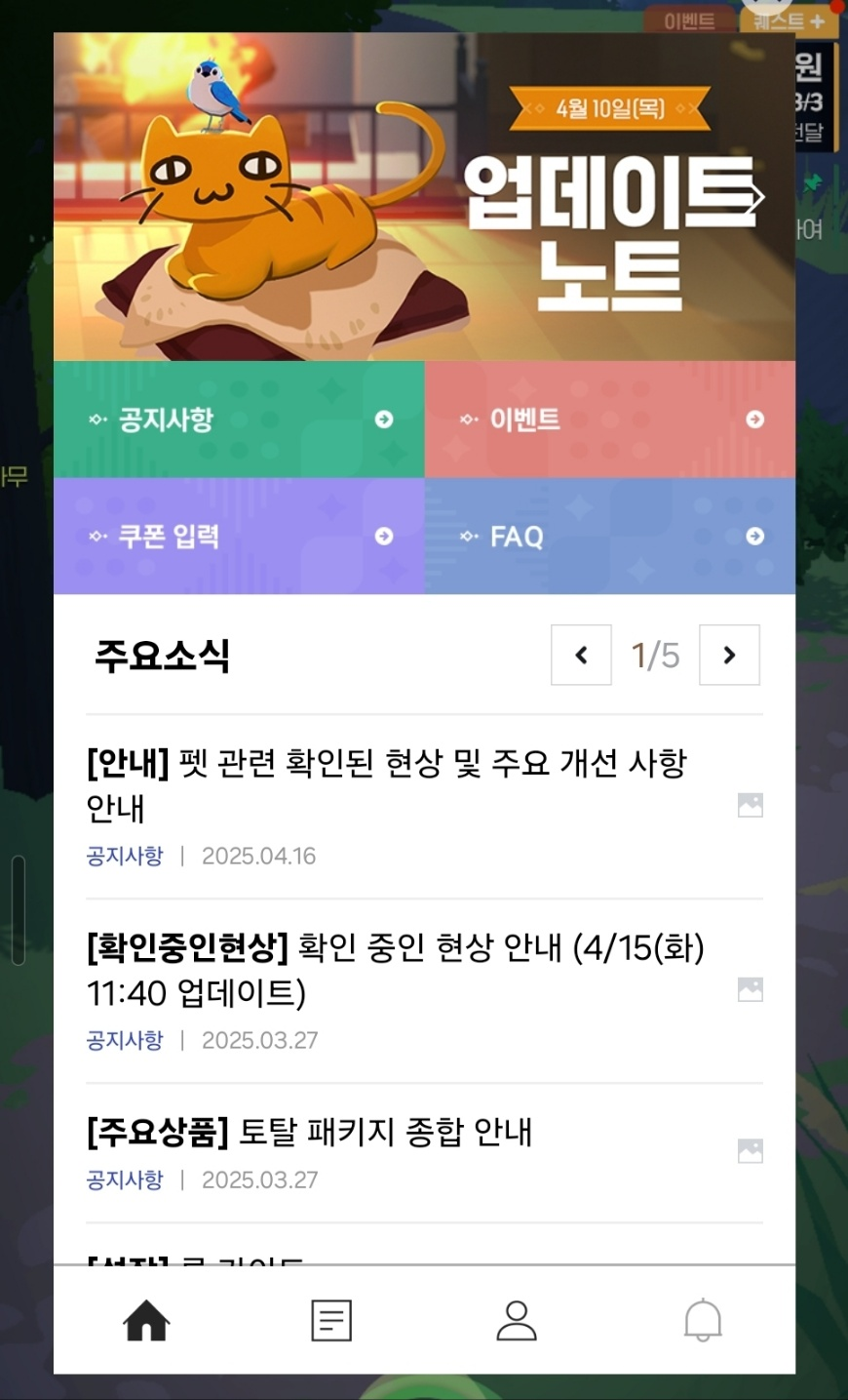 예를 들면 111% 회사의 게임들은 웹뷰로 공지와 패치노트를 띄우고 있고,
