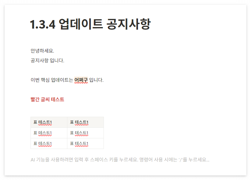 테스트를 위해 페이지를 따로 만들기는 귀찮았기에.. 노션을 이용해서 여러가지를 적어 게시를 했다.