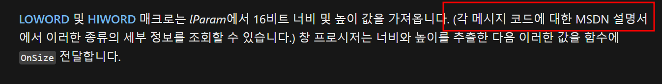 예를 들어 WM_SIZE 메시지에 대한 설명서에는 다음이 명시됩니다.