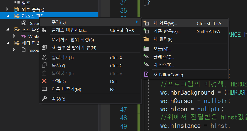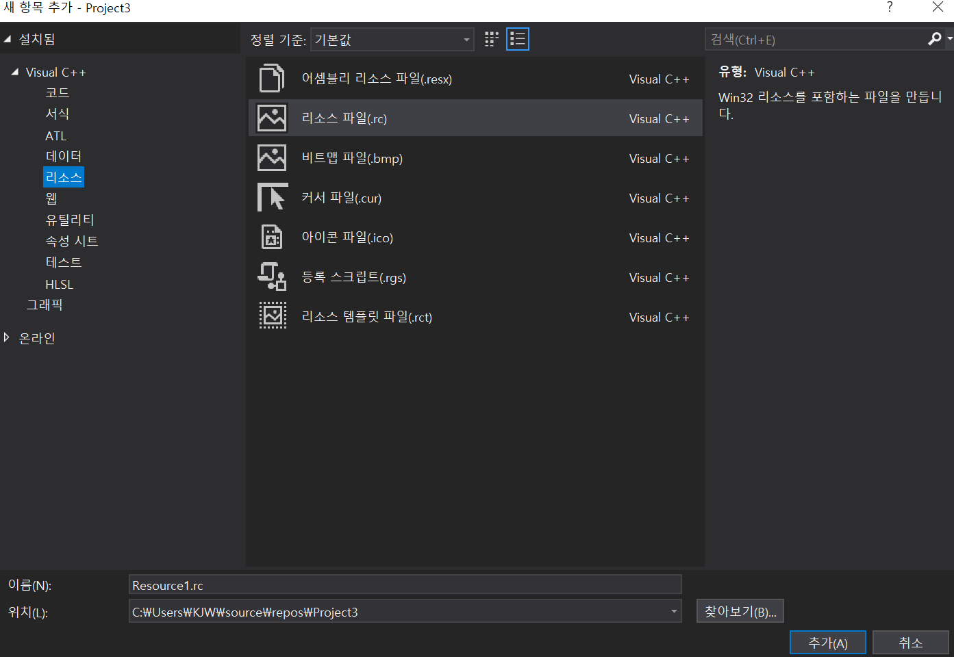 만든 리소스 파일의 헤더를 포함시켜준다.