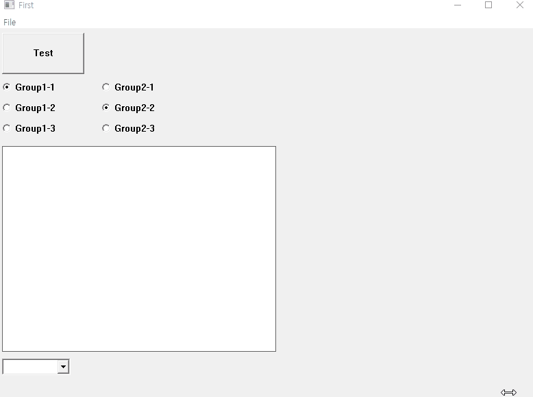 CreateWindow(L"button", L"Group1-2", BS_AUTORADIOBUTTON | WS_CHILD | WS_VISIBLE, 5, 100, 120, 30, hWnd, (HMENU)ID_RADIO2, g_Inst, NULL);