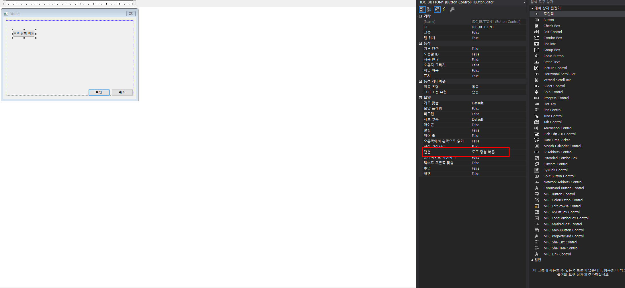 난 버튼을 하나 가져와서 속성-캡션에서 버튼 이름을 바꿔주었다.