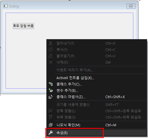 속성창을 찾을 수 없다면 창을 오른쪽 클릭 하면 띄울 수 있다.