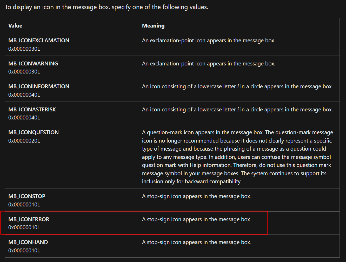 MessageBox function (winuser.h) - Win32 apps | Microsoft Docs