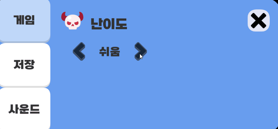 첫번째로는 옵션에서 난이도 기능을 넣었다.